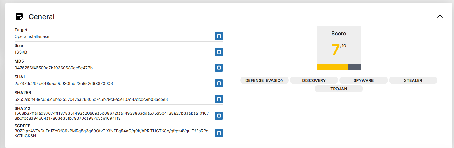 Official opera installer analysis - https://tria.ge/250807-tf8jtack6x/behavioral1