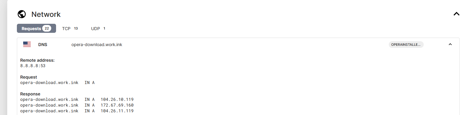 Disclaimer: I am a work.ink employee, however all the info provided here is public, and I have no benefit in working with anyone spreading malware, that'd just ruin my reputation. Furthermore I'm not on the engineering team and have no authority over anything you see here. I will be linking both the official opera installer analysis and the work.ink installer analysis below for transparency.